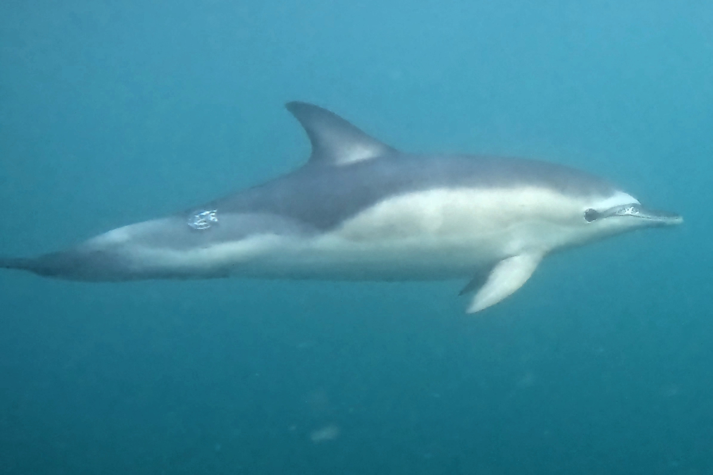 | Description | Second time I've seen this dolphin with distinct markings on tail and beak |